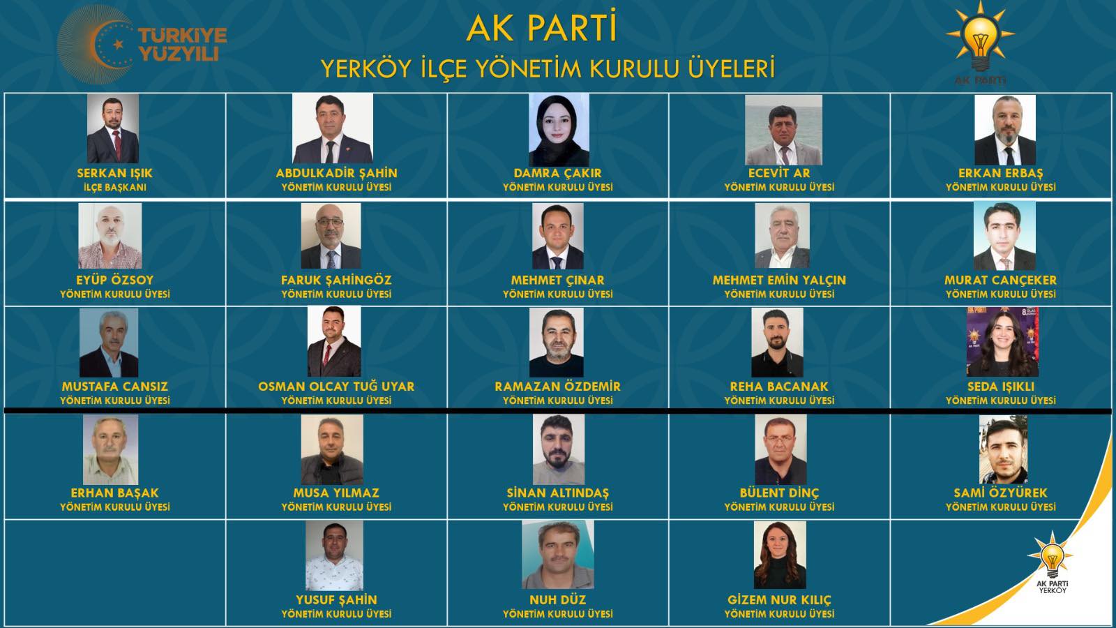 AK Parti Yerköy İlçe Teşkilatı’nda yeni dönem resmen başladı. AK Parti Yerköy İlçe Başkanı Serkan Işık başkanlığında oluşturulan yeni ilçe yönetim kurulu, düzenlenen açıklamayla görevine başladı.