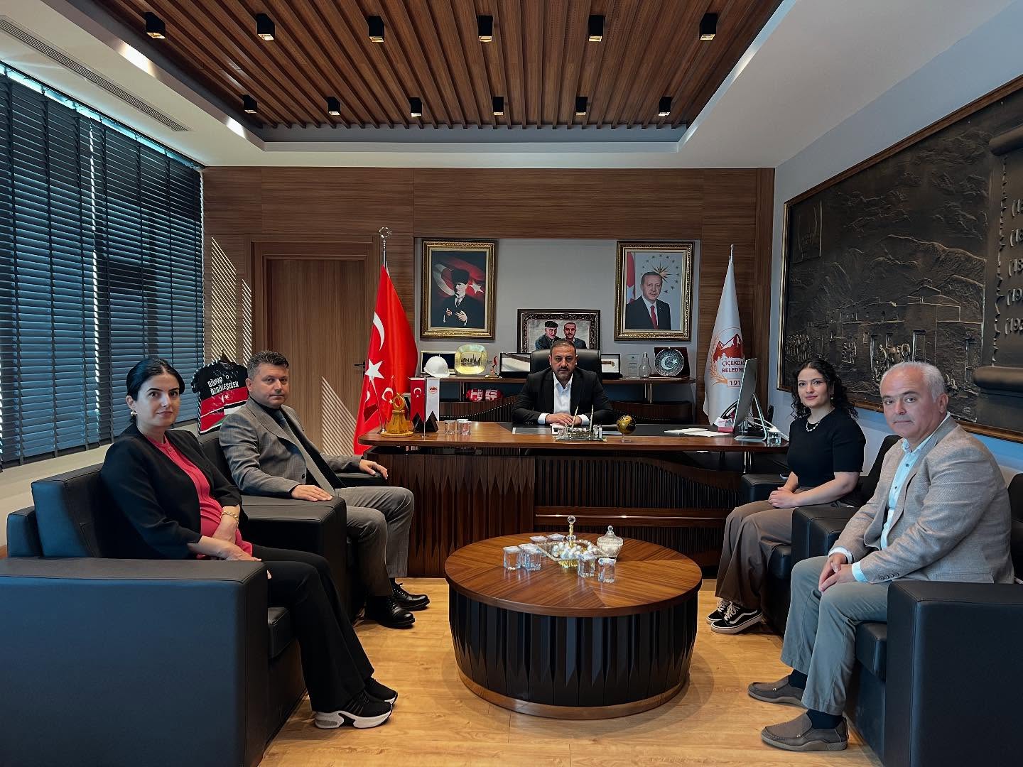 Çiçekdağı Belediye Başkanı Hasan Hakanoğlu, Kırşehir Aile ve Sosyal Politikalar İl Müdürü Serkan Sağlam ve beraberindeki heyeti makamında ağırladı.