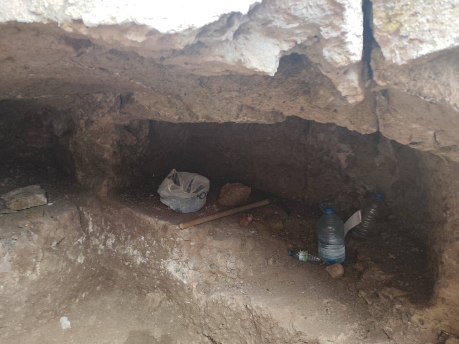 Şüphelilerin bulunduğu alanı geniş çaplı inceleyen ekipler, yaklaşık 400 metre ileride mağara şeklinde kazılmış bir alan tespit etti. Gözaltına alınan şahıslar, kazı alanını kendilerinin oluşturduğunu itiraf etti.