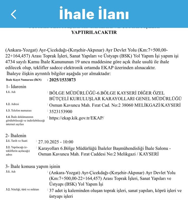 Çiçekdağı Belediye Başkanı Hasan Hakanoğlu, ilçenin ulaşım ağını kökten değiştirecek olan Çiçekdağı-Kırşehir arasındaki bölünmüş yol projesinde önemli bir aşamaya gelindiğini duyurdu. Projenin ihale tarihinin 27 Ekim olarak belirlendiği açıklandı.