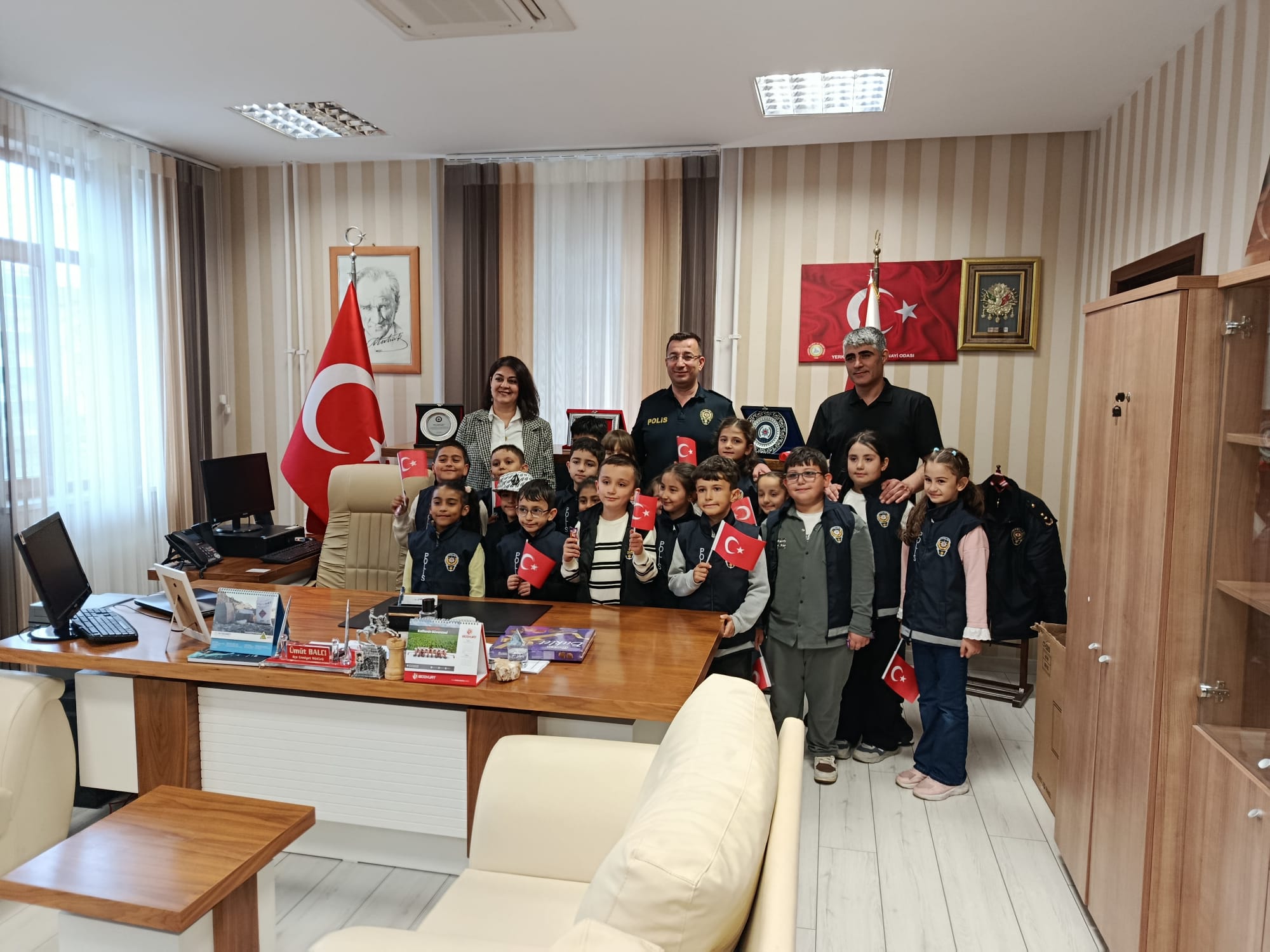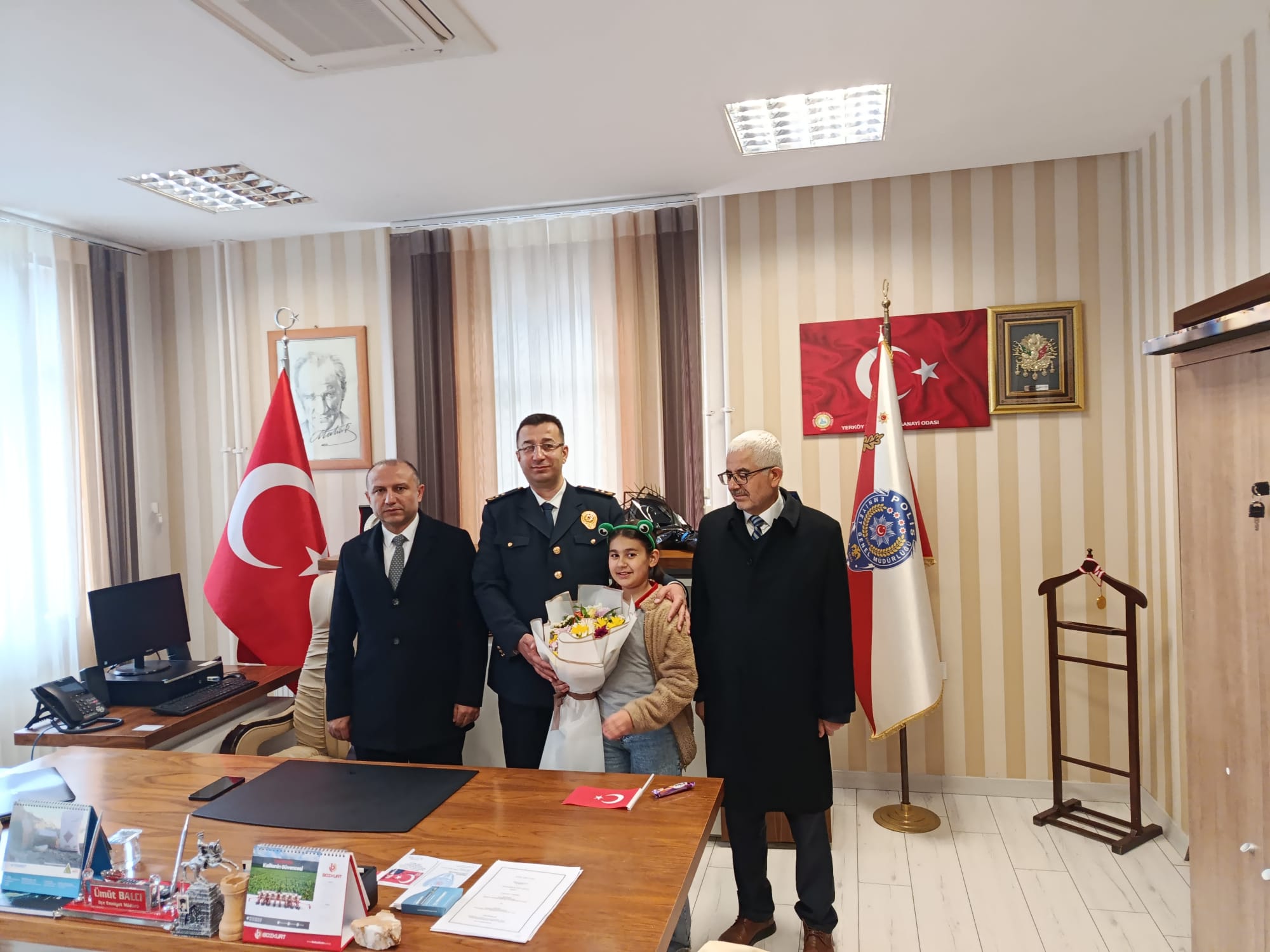 İlçe Emniyet Müdürü Ümüt Balcı’nın şahsında tüm emniyet teşkilatının 181. kuruluş yıl dönümünü tebrik eden okul idarecileri, “Huzurumuzun teminatı olan, gece gündüz demeden görev yapan kahraman polislerimizin her zaman yanındayız. Bu özel günde onlara şükranlarımızı sunmak istedik,” ifadelerini kullandılar. Emniyet Müdürü Balcı ise misafirperverliğini eksik etmeyerek, geleceğin teminatı olan öğrencilere ve eğitimcilere bu nazik davranışlarından dolayı teşekkürlerini iletti.
