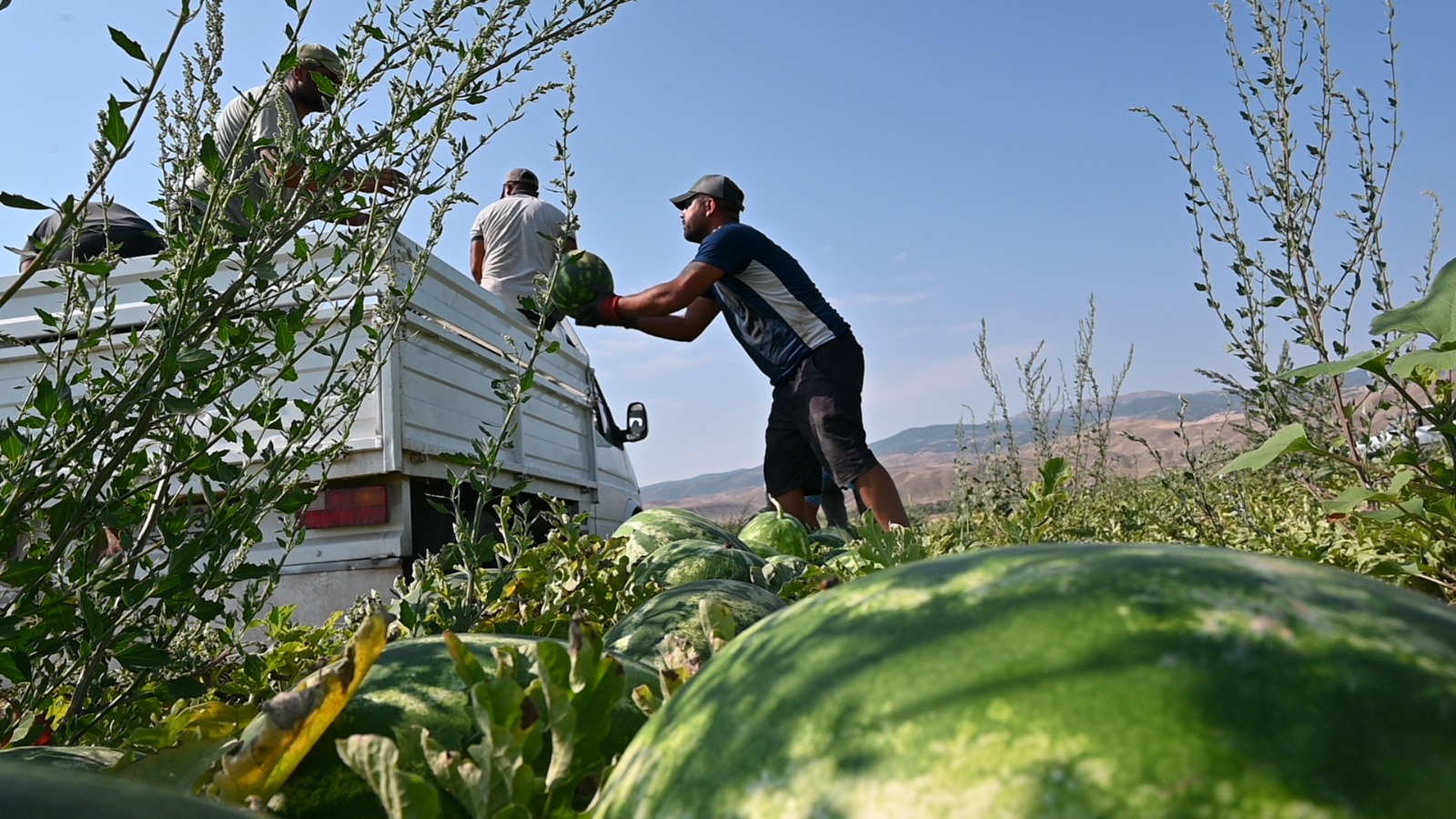 Gün doğmadan tarlalara inen üreticiler, kavurucu sıcaklık altında yoğun bir tempoyla çalışarak tarlalardan yüksek aromalı karpuzları topluyor. Hasat, Temmuz sonu itibarıyla başlamış olup Ekim ayına kadar sürecek.