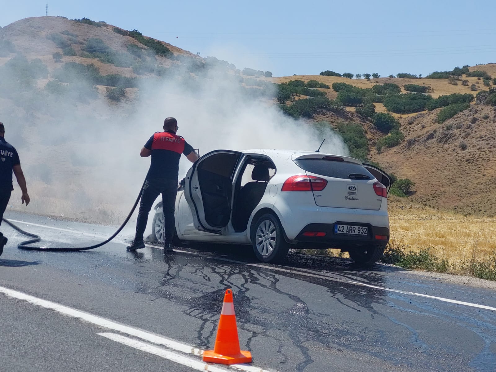 Yerköy’den Çiçekdağı istikametine gitmekte olan seyir halindeki 42 ARR 932 plakalı Kia marka otomobil, Keklik Ali mevkiinde henüz belirlenemeyen bir nedenle ön kaput kısmından alev aldı.