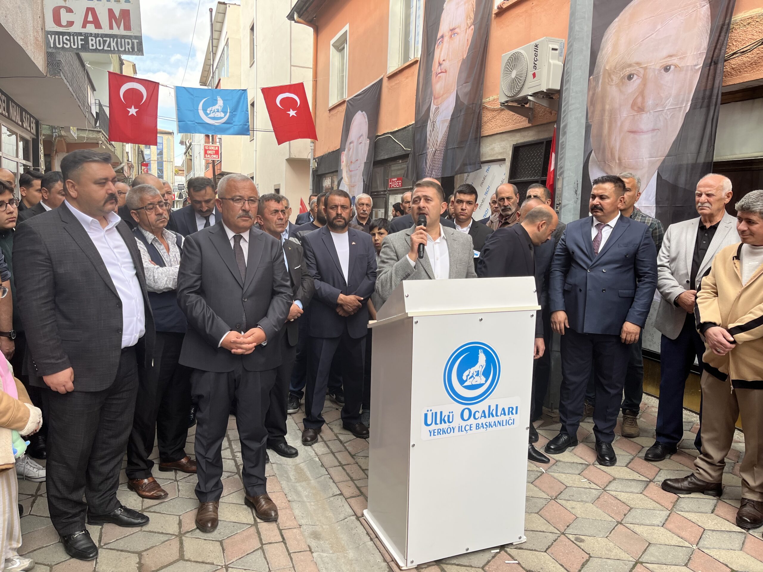 Yerköy’de Ülkü Ocakları Eğitim ve Kültür Vakfı’na bağlı Ülkü Ocakları Yerköy İlçe Başkanlığı, düzenlenen törenle hizmete açıldı. Açılışa, Yozgat Valisi Mehmet Ali Özkan, Milliyetçi Hareket Partisi Genel Başkan Yardımcısı ve Ankara Milletvekili Sadir Durmaz, Milletvekili Ethem Sedef, Yerköy Kaymakamı Mehmet Halis Aydın, Yerköy Belediye Başkanı Fatih Arslan, Milliyetçi Hareket Partisi İl Başkanı Tekin Irgatoğlu, Ülkü Ocakları İl Başkanı Fatih Akgül ve il protokolü ile birlikte, Ülkü Olacakları Eğitim ve Kültür Vakfı Yerköy İlçe Başkanlığı’nın yenilenen hizmet binasının açılış törenine katıldı.