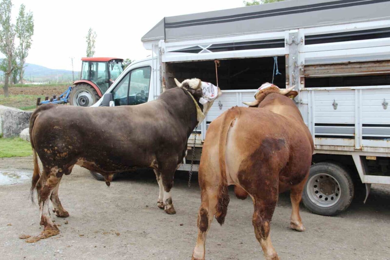 ÇORUM’DA UZUN YILLARDIR BESİCİLİK YAPAN VATANDAŞ, YAKLAŞAN KURBAN BAYRAMI ÖNCESİ YETİŞTİRDİĞİ DEV KURBANLIKLARLA DİKKAT ÇEKİYOR. 1 TON 150 KİLOGRAM VE 1 TON 50 KİLOGRAM AĞIRLIĞINDAKİ BÜYÜKBAŞ HAYVANLAR, BÖLGEDEKİ EN İRİ KURBANLIKLAR ARASINDA YER ALIYOR.