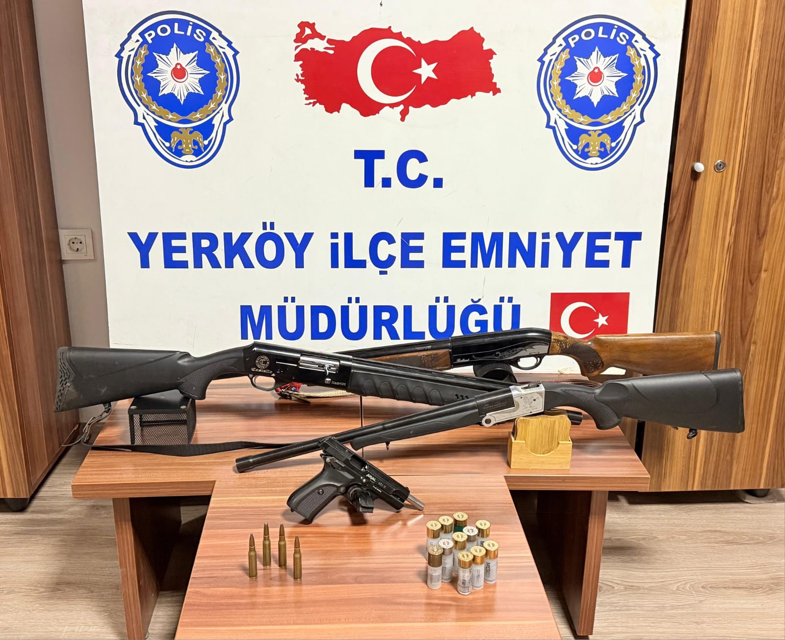 Yerköy İlçe Emniyet Müdürlüğü Suç Önleme ve Soruşturma Büro Amirliği ekipleri, Yerköy Cumhuriyet Başsavcılığı koordinesinde yürütülen çalışma sonucunda, iki şüpheliye ait adreste ruhsatsız silah ve mühimmat ele geçirdi.