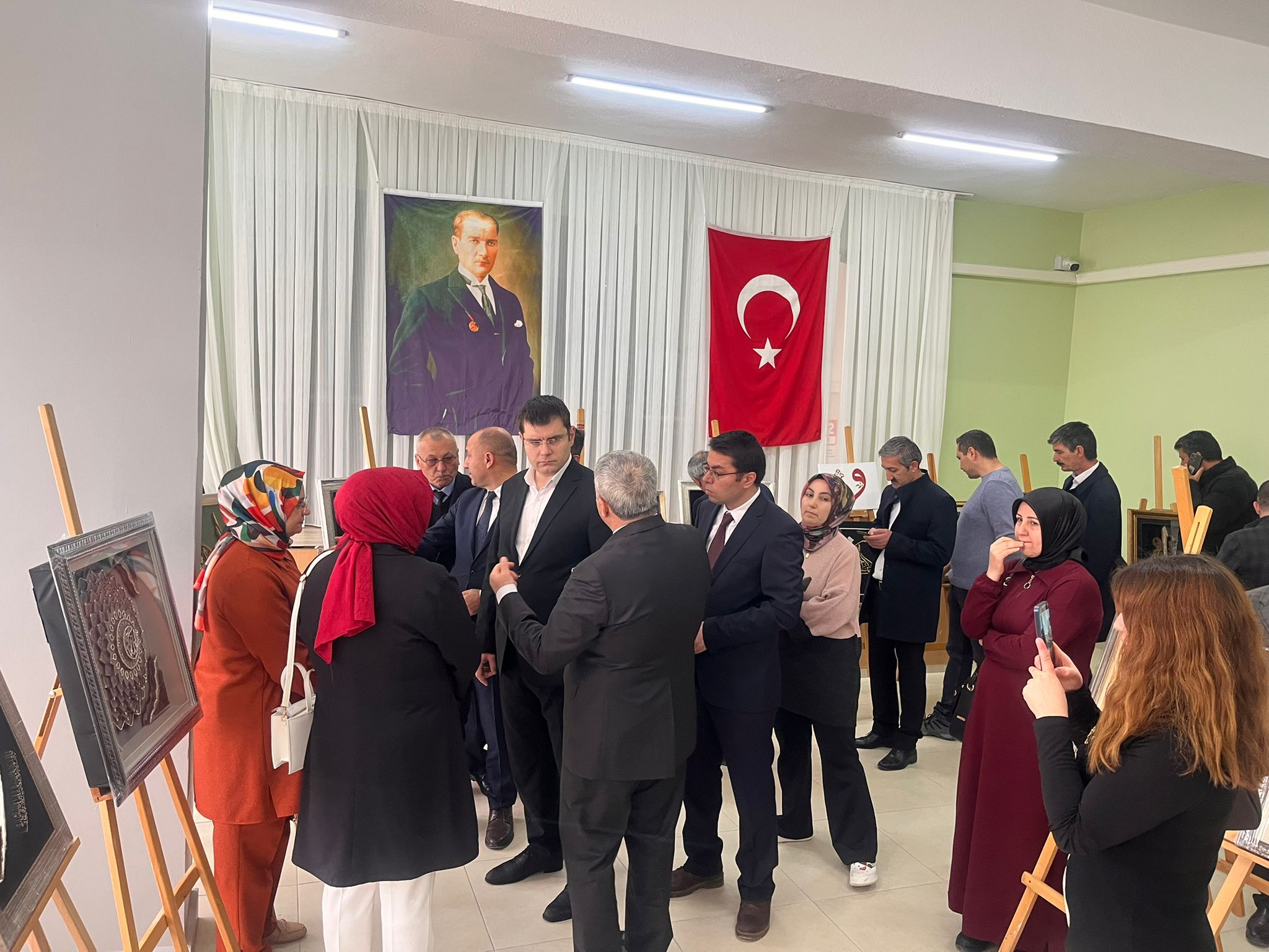 Yerköy Halk Eğitim Merkezi’nde gerçekleştirilen serginin açılışına Yerköy Kaymakamı Mehmet Halis Aydın, Yerköy Belediye Başkan Yardımcısı Yakup Doğruyol, Yerköy İlçe Milli Eğitim Müdürü Necmettin Sağlam, Yerköy Müftüsü Remzi Çalık, Yerköy Halk Eğitim Merkezi Müdürü Zafer Tan, öğretmenler ve kursiyerler katıldı.
